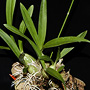 Epiphytic or lithophytic herb forming dense clumps. Roots much branched, aerial, thin, white, lacing over and covering pseudobulbs. Pseudobulbs crowded, ovoid, 3-7 cm x 3-4 cm, pale green, shiny, and covered in white, scarious sheaths when young. Leaves 2-4, erect, apical, sessile, bases sheathing stem; lamina narrowly ovate to narrowly elliptical, 15-20 cm x 2-2.5 cm, dark green, leathery. Inflorescence an axillary panicle, arching, 200-600 mm long, from base of pseudobulb, thin, wiry; pedicels 4-5 mm long. Flowers numerous, resupinate, porrect, 4-5 mm wide, cream, yellowish or pinkish with white labellum. Dorsal sepal erect, linear to oblong, 4-5 mm x 1 mm, yellowish-green, distal margins incurved, apex incurved. Lateral sepals fused along inner margins forming a synsepalum, cymbiform, 4-5 mm x 1.5 mm, projecting beneath the labellum, yellowish-green. Petals spreading widely, linear-obovate, 4-5 mm x 1 mm, apex obtuse, yellowish-green, becoming white at the margins. Labellum fused to column, porrect to obliquely deflexed, 4-5 mm x 4 mm; 3-lobed; lateral lobes, broadly triangular and spreading, midlobe short with 2 prominent calli. Column porrect, 3.5-4 mm long; with narrow cylindrical arms, 1.5 mm long; column wings forming mitra over anther. Column foot absent. Capsules ovoid to ellipsoid, 6-8 mm x 4-5 mm, dehiscent.