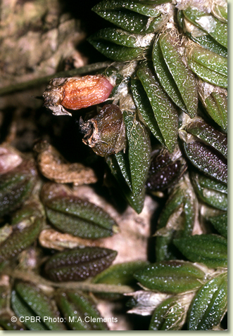 Occurs in rainforests and wet sclerophyll forests growing on trees and rocks, from sea-level to the ranges and tablelands. The plants are hardy and often grow in exposed situations where their leaves take on reddish tones. The small glittering or sparkling leaves are an appealing feature.