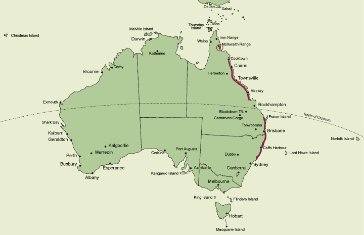 A genus of about 8 species distributed in Indonesia, New Guinea, Fiji, Ternate Island, Moluccas and Australia where there is a single non-endemic species, Pseudovanilla foliata, distributed sporadically between the McIlwraith Range (13°34’ S) on Cape York Peninsula, Queensland and Kempsey (31°05’ S) in northern New South Wales. State occurrence: Queensland, New South Wales.