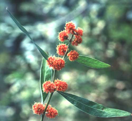 The blood-red variety of the Cinnamon Wattle (Acacia leprosa) was found growing in a Victorian forest in 1995 by two bush walkers. They took cuttings to the Royal Botanic Gardens, Melbourne, which manages a specialised plant conservation program, thereby saving many plants from probable extinction.