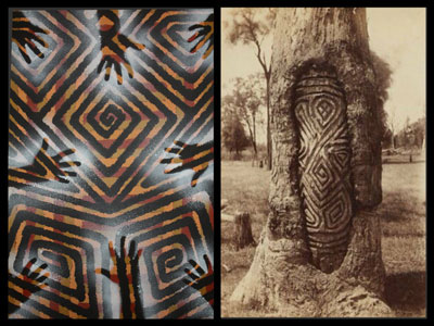 The exhibition also consists of black and white photos of the Scar Trees which were marked throughout Wiradjuri country. Most of these trees have been cut down over the last 100 years - some placed in major museums around Australia.