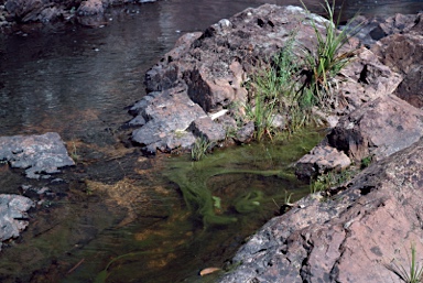 Freshwater algae, Spirogyra sp., between Braidwood and top of Clyde Mountain, NSW, 1981